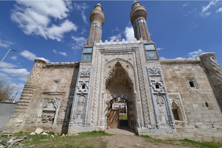 Çifte Minareli Medrese, Sivas'ın sembolü haline gelmiş önemli bir yapıdır. 1271/1272 yıllarında İlhanlı Veziri Sahip Şemseddin Mehmet Cüveyni tarafından yaptırılmıştır. Anadolu'nun en yüksek taç kapısına sahip olan medrese, taşkapı üzerindeki çini bezemeleriyle dikkat çeker. İki katlı, dört eyvanlı olan bu medrese, bitkisel ve geometrik motiflerle süslüdür ve hala sağlam bir şekilde ziyarete açıktır.