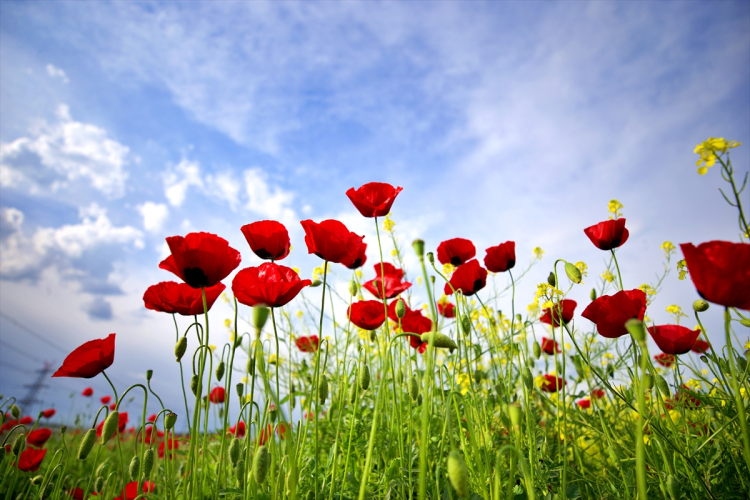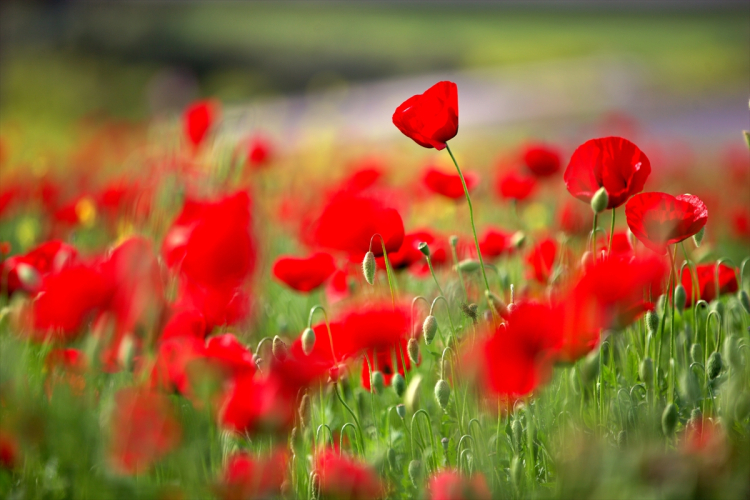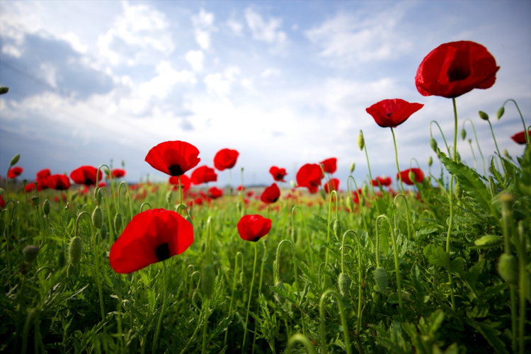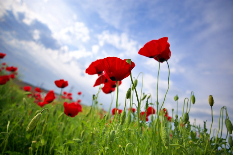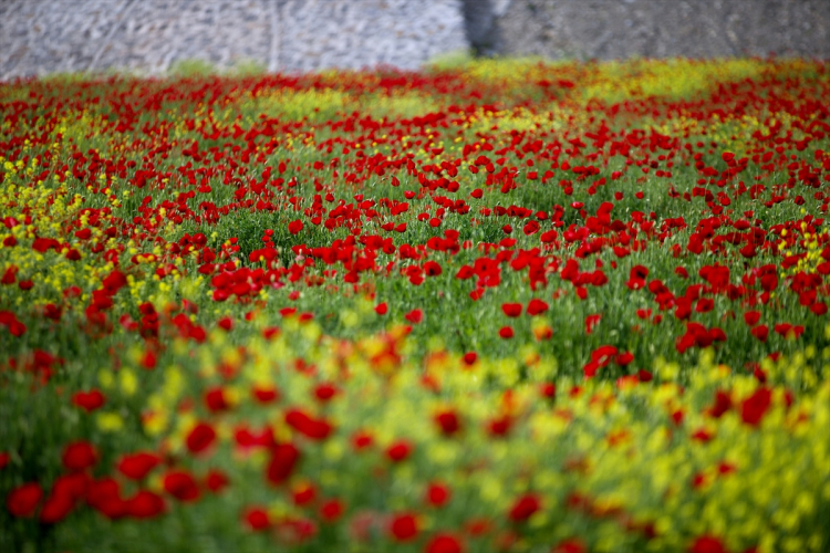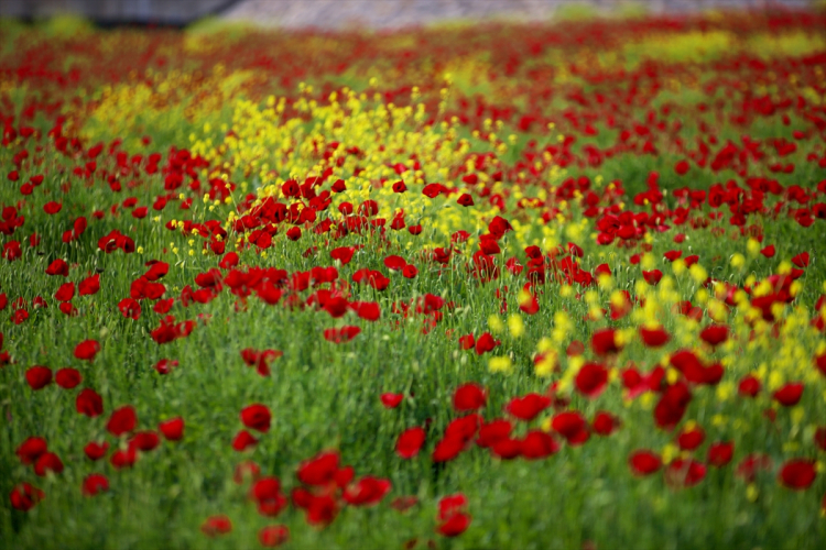 İlkbaharın gelmesiyle açan gelincik çiçekleri toprağı kırmızıya bürüdü