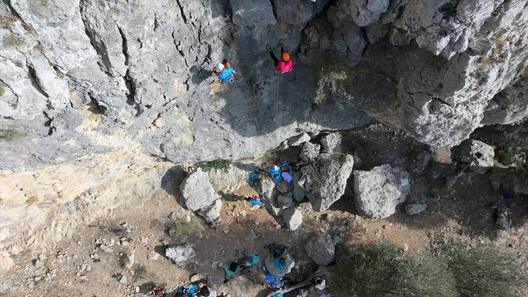 Hazırlıklarını tamamlayan sporcular, zorluk seviyesine göre belirledikleri rotalarda tırmanışa geçiyor. Zirveye ulaşan tırmanıcılar, kanyonun panoramik manzarasını yukarıdan izleme fırsatı buluyor.