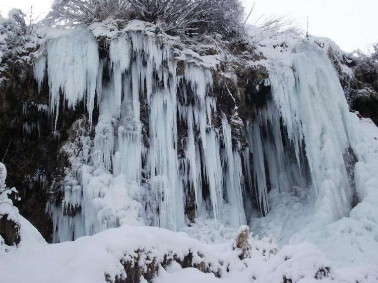 Karla kaplanan Girlevik Şelalesi, doğaseverleri bekliyor