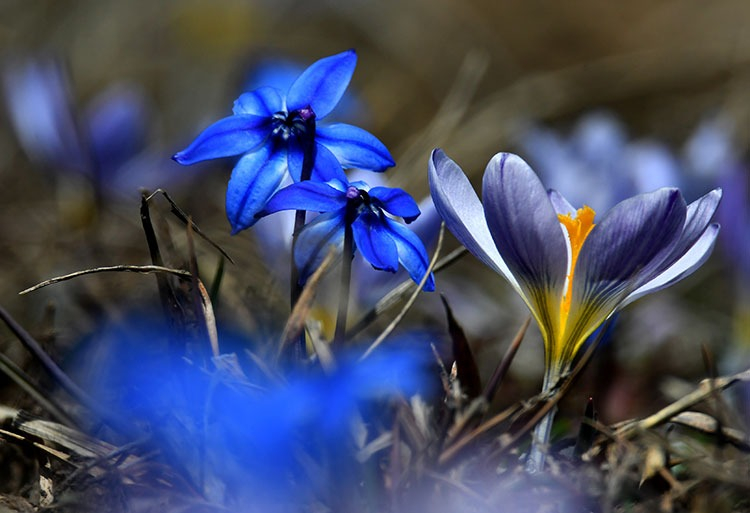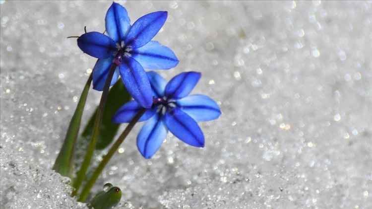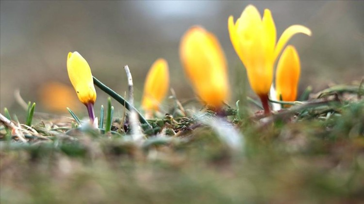 Kars'ın Sarıkamış ilçesinde "baharın müjdecisi" olarak adlandırılan kardelen ve çiğdemler çiçek açtı.