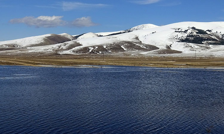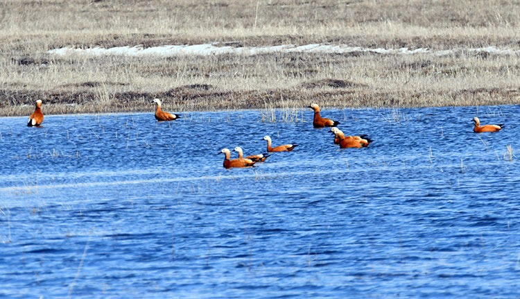 Öte yandan, eriyen kar suları çayırlarda göletler oluştururken, buraya gelen angıt ve yeşilbaşlı ördeklerin yüzerek beslenmeye çalıştığı görüldü.