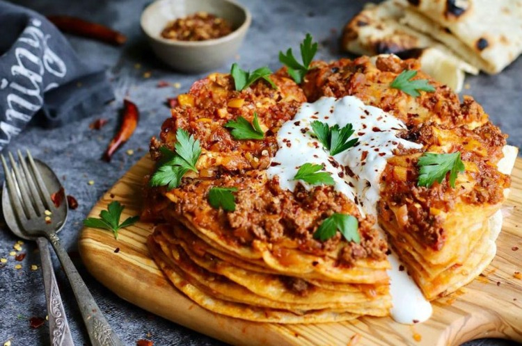 Kayseri’nin eşsiz lezzetlerinden biri de yağlama. Lahmacunun kat kat kesilip üst üste dizilmiş, daha ıslak ve yumuşak versiyonu olarak tanımlanabilir. Peki, nasıl yenir? Yoğurdu dilimin ortasına bir şerit olarak sürdükten sonra, yağlamanın o katını lahmacun gibi dürüp ısırıyorsunuz. Hem doyurucu hem de enfes bir tat olan yağlama, Kayseri’nin mutlaka denenmesi gereken yemeklerinden biri.