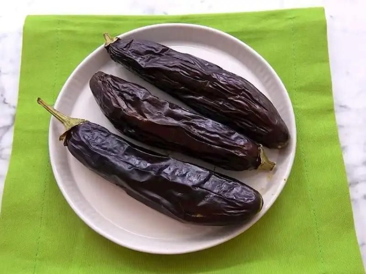 Közlenmiş patlıcanlar süzgece alınarak musluk altında nazikçe yıkanır. Bu yöntem, patlıcan liflerini zedelemeden yüzeyde kalan acı özleri uzaklaştırır. Yoğun ateşte közlenen patlıcanlarda fark yaratır.
