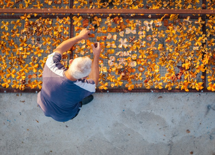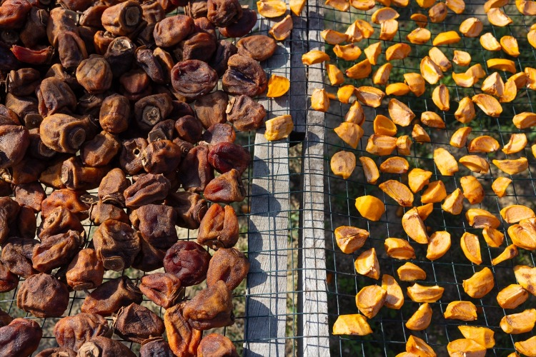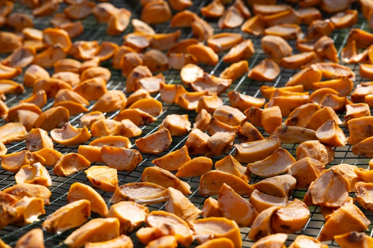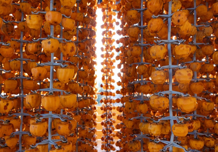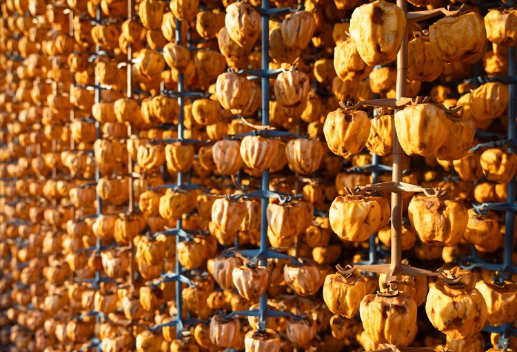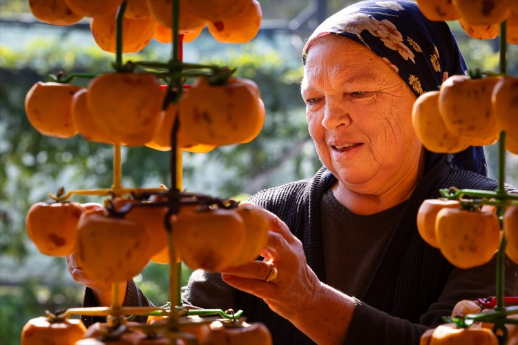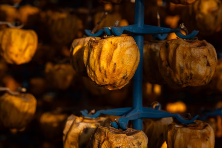 Hasat edilen hurmalar, kurutma alanlarına getirilerek önce kabuklarından arındırılıyor. Soyma işleminin ardından tek tek özenle iplere dizilen meyveler, özel olarak hazırlanan tezgahlara ve evlerin damlarına asılıyor.