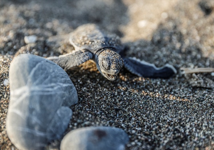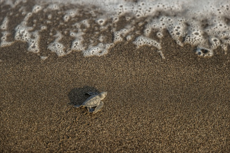 Mersin'in Mezitli ilçesinde yumurtalarından çıkan yeşil deniz kaplumbağası yavruları denizle buluşmaya devam ediyor. Anaç kaplumbağaların, mayıs ayından itibaren Davultepe 100. Yıl Tabiat Parkı'ndaki kumsala yaptığı yuvalarda kuluçka dönemini tamamlayan yavruların yumurtadan çıkışları sürüyor.