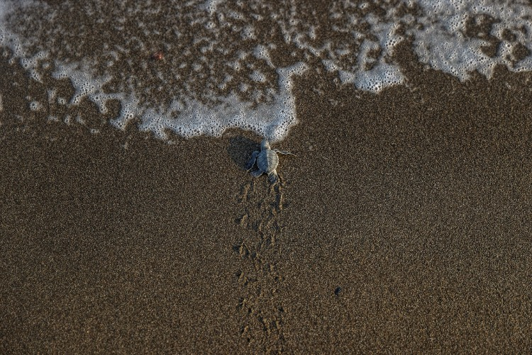 Mersin Üniversitesi (MEÜ) Deniz Kaplumbağaları Uygulama ve Araştırma Merkezi Müdür Yardımcısı Mahmut Ergene ve MEÜ Fen Fakültesi Biyoloji Bölümü öğrencileri gözetimindeki yavrular, kumsaldaki yolculuklarının ardından denize ulaştı.