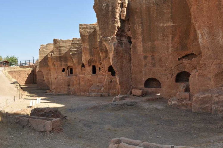 Ana kayanın yontulmasıyla derin vadiler şeklinde oluşturulmuş bu alanda, Geç Roma dönemine tarihlenen yüzlerce kaya mezar bulunmaktadır.