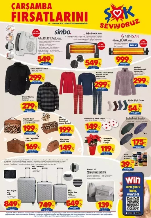 Soğuk havaların başladığı bu dönemde, ısıtıcılar ve polar giysiler de ŞOK'un aktüel ürünleri arasında. Sinbo SFH-6940 Fanlı Isıtıcı 549 TL Sinbo Quartz Isıtıcı 549 TL Minisan SR 2600 Isıtıcı 999 TL Erkek Polar Gömlek 299 TL