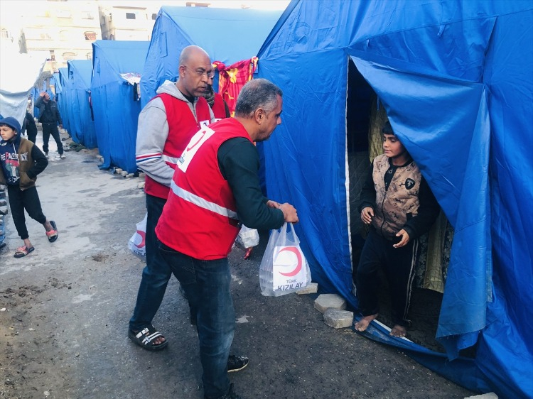Filistinliler için ramazanda sıcak iftarlık ikram eden Türk Kızılay ekipleri, çadırlarında yemek yapmak isteyenler için de bulgur, pirinç, un, salça ve yağ gibi temel gıda malzemeleri dağıtıyor. Bölgede yaşam malzemesi, su ve hijyen kolisi desteklerini sürdüren Türk Kızılay, iki farklı noktada kurulan aşevlerinde her gün 60 bin Filistinliye sıcak yemek imkanı sağlıyor.