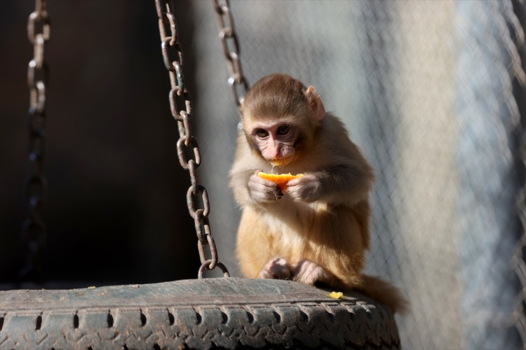 Antalya'da gerçekleştirilen uyuşturucu operasyonunda ele geçirilen rhesus cinsi yavru maymun "Portakal", Antalya Doğal Yaşam Parkı'ndaki rehabilitasyon ve karantina sürecini tamamlayarak yeni ailesine katıldı.