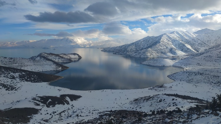 Van’da kış mevsiminin etkisini artırmasıyla birlikte yoğun kar yağışı kenti beyaza bürüdü. Karla kaplanan dağlar ve kıyı şeridi, Van Gölü’nün masmavi sularıyla buluşarak dikkat çekici bir manzara oluşturdu. Beyaz örtü ile gölün mavi tonları arasındaki kontrast, doğaseverlerin ilgisini çekti.