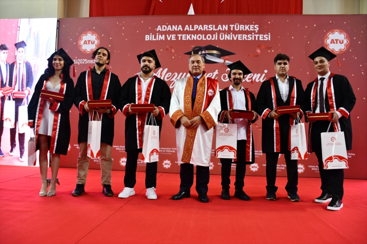 Adana Alparslan Türkeş Bilim ve Teknoloji Üniversitesinden (ATÜ) mezun olan öğrenciler için tören düzenlendi. Serinevler Spor Salonu'nda gerçekleştirilen törende, 6 fakülteden 497 öğrenci mezun olmanın sevincini yaşadı. ATÜ Rektörü Prof. Dr. Adnan Sözen, törende, üniversitenin kurulduğu günden bu yana önemli gelişim gösterdiğini söyledi. Yıl boyunca emek veren öğrencileri mezun etmenin mutluluğunu yaşadıklarını belirten Sözen, "Her biri altın değerinde olan siz değerli gençlerimizi geleceğe hazırlamak için mücadele veriyoruz. Hedefinizi nasıl belirlerseniz belirleyin, beklentimiz, önce kendisiyle barışık, ailesine, ülkesine ve insanlığa faydalı bireyler olmanızdır." dedi.