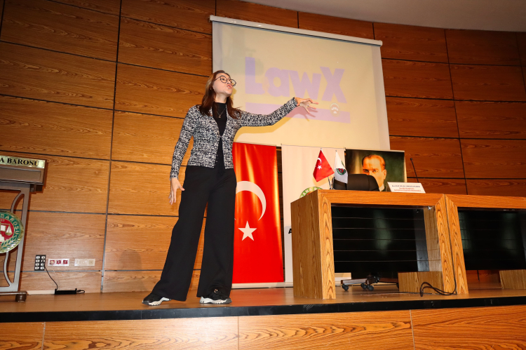 Av. Volkan Böke, “Hem staj açılış törenimizde hem de staj toplantılarında hukukun dışında da sizlere bir şeyler katmayı hedeflemiştik ve sonrasında da bunun üzerine çalışmalarımıza başladık. LawX çalışmasını da bu hedef doğrultusunda yaptık. Bu projemiz ile kendi hayat hikayesini yazmış başarılı meslektaşlarımızı, sanatçıları veya sporcuları buraya davet ederek farklı deneyimler aktarmalarını istedik. Bugün değerli meslektaşımız Elif Hilal Umucu Kara ile bu projemize başlıyoruz. Sonrasında da bunu bir seri gibi devam ettirerek sizlere sadece hukuk değil, hukuk dışında da bilgilendirmeler yapmayı hedefliyoruz.” dedi.