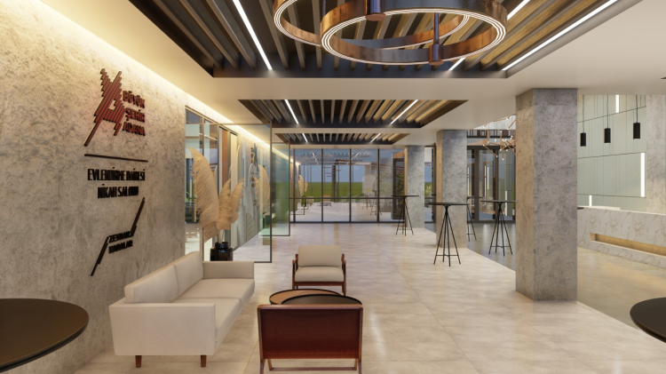 Zemin katta giriş holü, fuaye, nikah salonu, gelin-damat odası, bekleme alanı, pano odası ve içecek servis olanı bulunacak. 1. katta ise yönetim ve personel odaları ile alanları yer alacak.