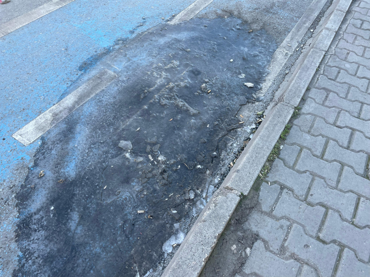 Adana’da soğuk hava etkisini artırdı! Cuma akşamından bu yana devam eden düşük sıcaklıklar nedeniyle cadde ve kaldırımlardaki su birikintileri buz tuttu.