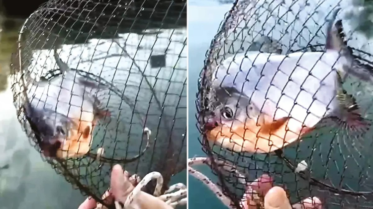 Adana'nın merkez Seyhan ilçesindeki bir mahalleden geçen DSİ'ye ait sulama kanalında tesadüfen görülerek yakalanan piranha, çocukların sıcak havalarda yüzmesini engellemedi.