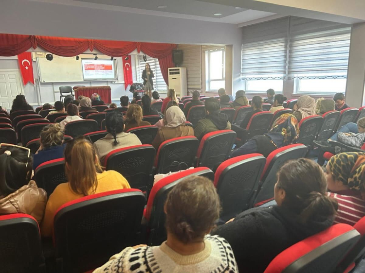 Adana’da Mehmet Akif Ersoy Ortaokulu velilerine yönelik düzenlenen Aile Eğitim Programı kapsamında, “Madde Kullanım Riski ve Bağımlılıktan Korunma” ile “Evlilik ve Aile Hayatı” konularında interaktif eğitim verildi.