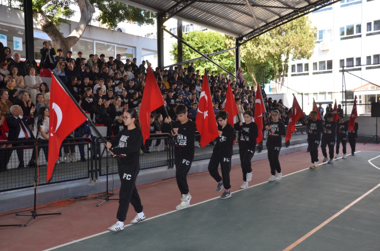 Ortaokul öğrencilerinin yaptığı sunumlarda 111. Yılı anılan Çanakkale Zaferi ile ilgili türküler söylendi, dönemi anlatan drama gösterileri sunuldu. Oratorya ve şiirler ile izleyenleri duygulandıran gösterilerin ardından minik finallilerin oynadığı Zeybek Oyunu ile de gurur dolu anlar yaşandı. Coşkulu bayrak geçişi töreninin ardından program sona erdi.