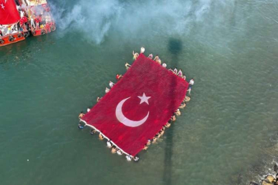 Sarı Zeybekler Derneğince sahilde düzenlenen etkinlikte de yüzme sporcuları denizde 123 metrekarelik Türk bayrağı açtı.