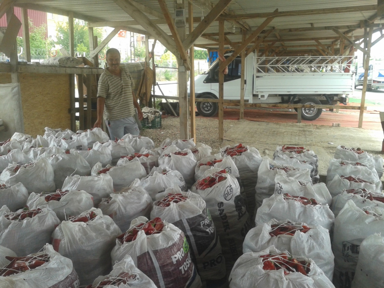 Ev hanımlarının komşularının yardımıyla temizleyerek yıkadıkları ve bir süre bekletildikten biber çekme makinelerinde harç haline getirilen ürünler, kurutmaya bırakılıyor ve bu işlemin ardından cam veya plastik kaplara özenle aktarılarak kullanılmak üzere kilerlere depolanıyor.