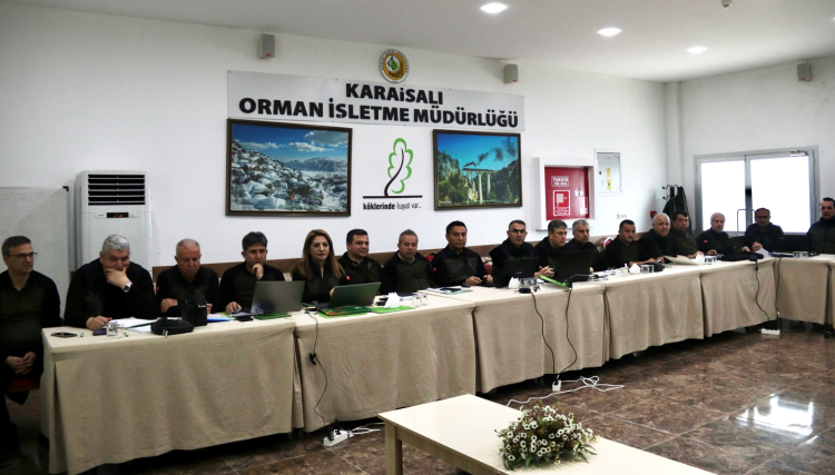 Adana Orman Bölge Müdürü Tahsin Etli başkanlığında Karaisalı Orman İşletme Müdürlüğü’nde düzenlenen toplantıya, bölge müdür yardımcıları, şube müdürleri, fidanlık, havacılık ve işletme müdürleri katıldı. Birim amirleri tarafından yapılan sunumlarda 2026 yılında başlayan ağaçlandırma, silvikültürel bakım, orman zararlılarıyla mücadele, üretim ve rehabilitasyon çalışmaları ele alındı.