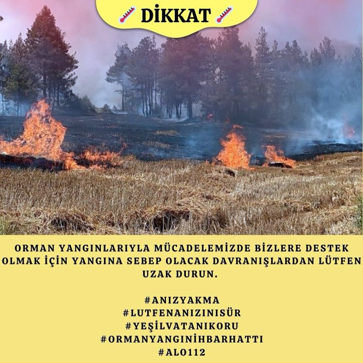 Vatandaşlara, hava sıcaklarının artmasıyla birlikte meydana gelen orman yangınlarına karşı daha dikkatli olmaları çağrısında bulunan Etli, "Lütfen, yangına neden olacak davranışlardan uzak duralım. Anız yakmak yerine tarlaların sürülmesi, olası yangınlara sebep olmamak için son derece önemli. Meydana gelen yangınların ise Alo 112 hattına anında bildirilmesi de yangına kısa sürede müdahale açısından önem taşıyor" dedi.