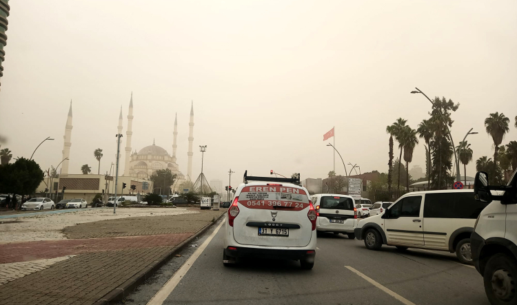 Adana'da etkisini gösteren toz taşınımı nedeniyle görüş mesafesi ve hava kalitesi düştü.