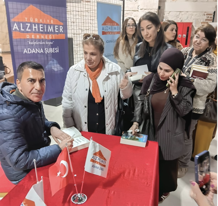Prof. Dr. Evlice, “Alzheimer’in cerrahi tedavisi yok. Kitap okumak, satranç oynamak, bulmaca çözmek ve yabancı dil öğrenmek hastalığı yavaşlatıyor. Zihinsel ve fiziksel aktiviteleri artırmak gerekir. Genellikle yavaş yavaş başlayan, giderek kötüleşen, beyin hücrelerinin ölümüyle başlayan Alzheimer’de hafıza kaybı unutkanlığa, günlük işlerde zorluklar, dil problemi, zaman, mekan karışıklığı, karar verme güçlüğü ve sosyal yaşamdan çekilmeler görülmektedir. 65 yaşından büyük her 10 kişide biri, 80 yaşında her 10 kişiden2 veya 3’ü Alzheimer olmaktadır. Bu bağlamda yazar Sinan Akyüz’ü Adana’ya davet ederek hasta yakınları ve üyelerimize yararlı bilgiler aktarmasını sağladık” şeklinde konuştu.