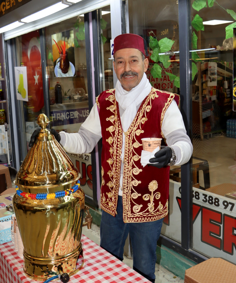 Uzun Çarşı’da meyan şerbeti, turşu çeşitleri, yaz aylarında limon ve güllü dondurma, limonata ile haytalı gibi ürünlerle tanınan ve “Hançer Usta” olarak bilinen Mehmet Gündüz, şimdi de kış mevsiminin simgesi haline gelen salep ile adından söz ettiriyor.