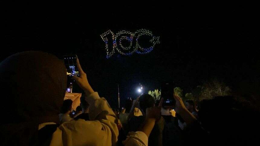 Konser sonrası havalanan yüzlerce dron ile gökyüzünde Atatürk'ün imzası, 100. yıl logosu, 29 Ekim 1923 yazısı, Türk bayrağı ve Atatürk'ün silüeti oluşturuldu.