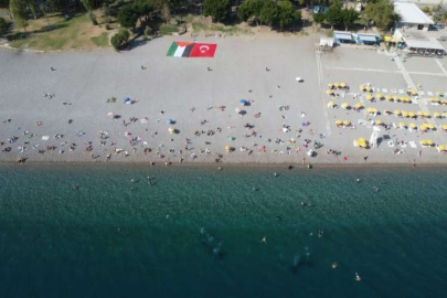 Sahilde dalgıç kıyafetleri giyen arama kurtarma ekipleri, dev Türk ve Filistin bayrakları ile denize girdi. Yaklaşık 25 kişilik ekibin katıldığı eylemde bayraklar deniz yüzeyinde açıldı, plajda güneşlenen tatilciler de bayrakların açılmasına alkışlarla destek oldu. O anlar cep telefonu kameralarıyla kayıt altına alındı.