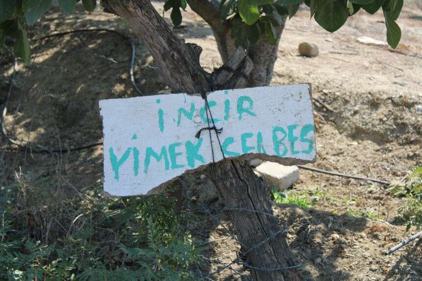 Aydın’ın Efeler ilçesine bağlı kırsal Mesutlu Mahallesi yolu üzerinde bulunan bir incir bahçesine asılan Ege şiveli “İncir yimek selbes” yazılı not, görenlerin hem içini ısıttı hem de paylaşmanın önemini gözler önüne serdi.