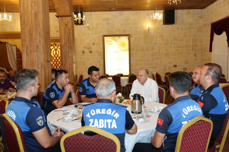 Yüreğir Belediye Başkanı Ali Demirçalı, Zabıta Teşkilatı’nın 199’uncu kuruluş yıldönümü kapsamında Zabıta personeliyle kahvaltıda bir araya geldi ve personelin Zabıta Haftası’nı kutladı.