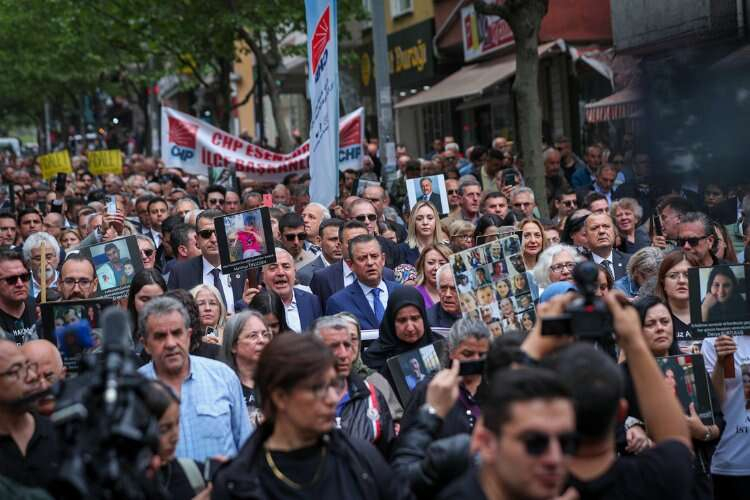 CHP Genel Başkanı Özgür Özel de, Çorlu'daki duruşma öncesi, kazada hayatını kaybeden ve yaralanan kişilerin yakınları ile kazada yaralanan müştekileri yalnız bırakmadı.