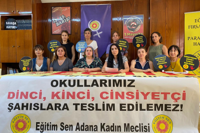 Eğitim Sen Adana Şubesi Kadın Meclisi, Bursa’da bir kadın öğretmene uygulanan psikolojik şiddeti kınamak amacıyla basın açıklaması yaptı. Kadın Sekreteri Saadet Çağrı Coşkun, eğitimdeki cinsiyetçi uygulamalara karşı eşitlik ve özgürlük mücadelesinin sürdürüleceğini vurguladı.