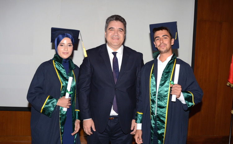 ÇÜ'de düzenlenen mezuniyet töreni, saygı duruşu ve İstiklal Marşı’nın okunmasıyla başladı.
