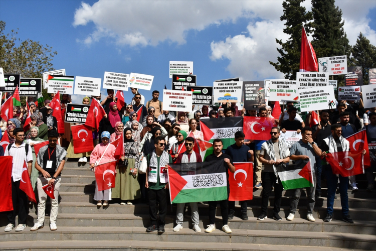 Çukurova Üniversitesi (ÇÜ) akademisyenleri ve öğrencileri, Filistin halkına destek vermek için kampüste yürüyüş düzenledi. Ellerinde Türk ve Filistin bayraklarıyla yürüyen katılımcılar, Kur’an-ı Kerim okumasının ardından gökyüzüne balon bıraktı.