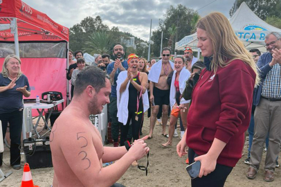 Datça ilçesinde bu yıl 18’incisi düzenlenen kış açık deniz yüzme maratonuna İstanbul’dan katılan yüzme antrenörü Kaan Peyami Orhan, 3 bin metrelik parkuru tamamladıktan sonra sahile geldiğinde anons yapan görevliye kız arkadaşına evlilik teklifi yapacağını ve yarış bitiş alanına davet etmesini istedi.