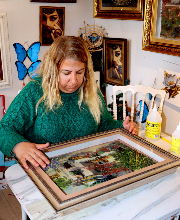 Rölyef sanatçısı Nadya Zateri’nin 3 Boyutlu Kaat-ı tekniğiyle hayat verdiği eserler, izleyenleri ilk bakışta etkisi altına alıyor. Katman katman işlenen her detay, sabrın ve estetik inceliğin bir yansıması olarak dikkat çekiyor. Ancak bu çalışmalar arasında yer alan bir eser, sanatçı için yalnızca sanat üretimi değil, geçmişe uzanan derin bir hatıranın taşıyıcı niteliği taşıyor.