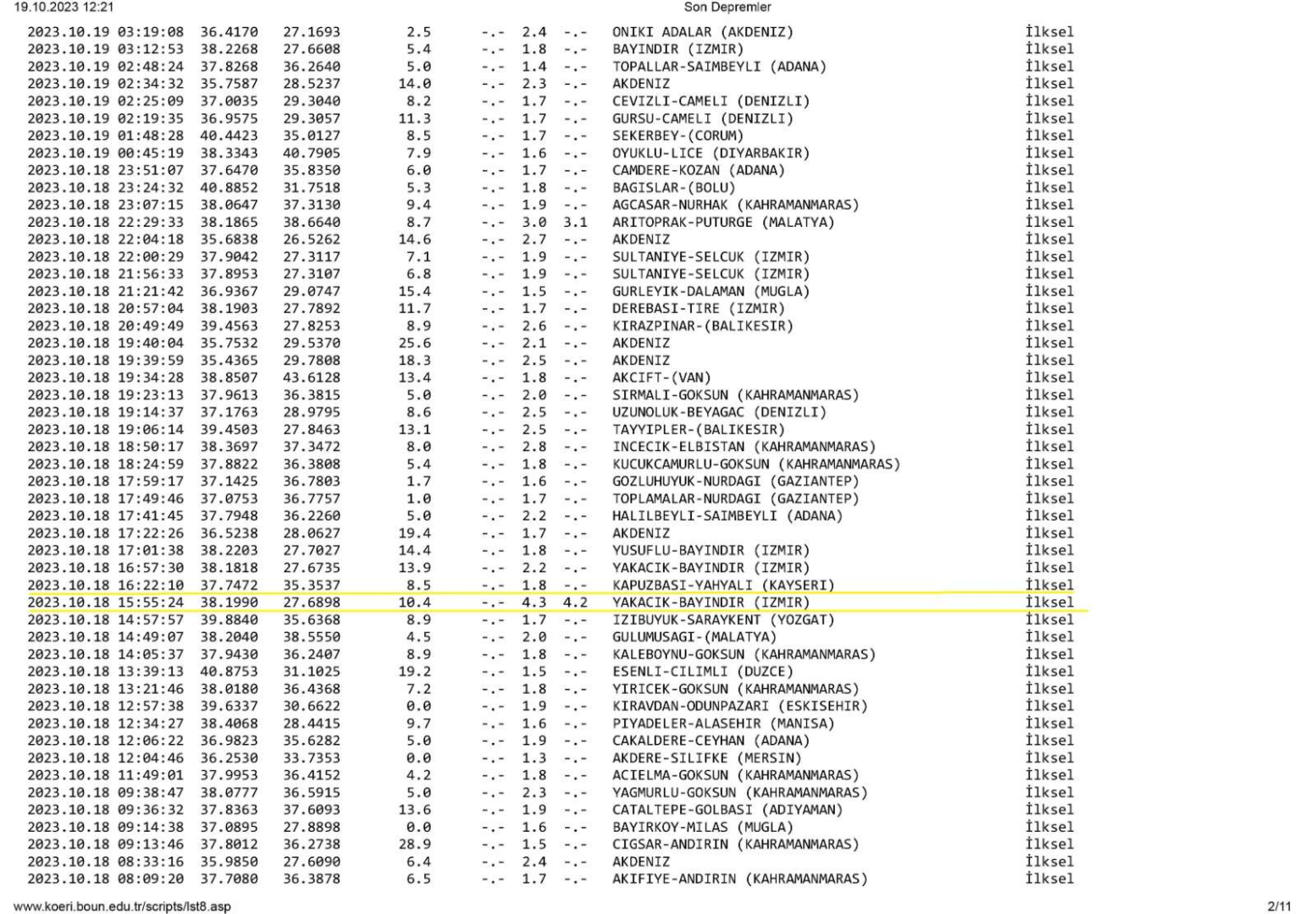 Melih Baki'nin bu açıklamasından dakikalar sonrasında, Baki'nin işaret ettiği bölgelerden olan Ege Bölgesi'nde yer alan İzmir'de dün saat 15.55'te, 4,2 büyüklüğünde deprem meydana geldi.