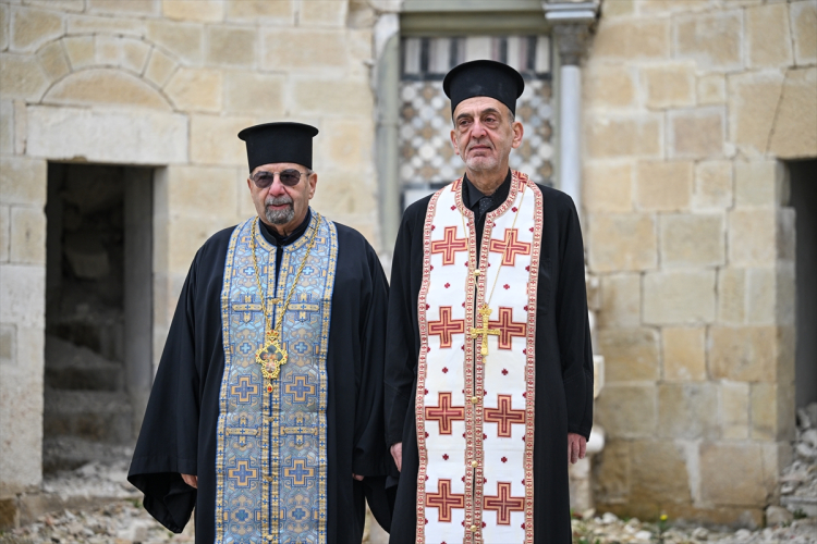 Hatay’da 6 Şubat 2023 depremlerinde kısmen yıkılan Antakya Rum Ortodoks Kilisesi’nde, afette hayatını kaybedenler için ayin düzenlendi.