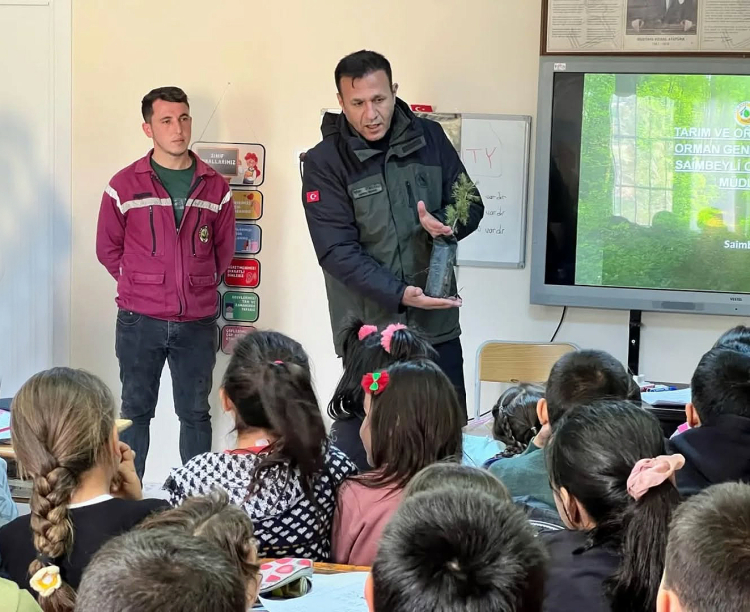 Saimbeyli Orman İşletme Müdürü Ayhan Uyaroğlu ve İşletme Şefi Veli Can Sarıbıyık’ın katılımıyla gerçekleşen etkinlikte, öğrencilere, ormanların doğa ve insan yaşamı için taşıdığı hayati önem anlatıldı. Program kapsamında orman yangınlarına karşı alınması gereken önlemler, sürdürülebilir ormancılık uygulamaları ve fidan dikiminin önemi gibi konularda bilgiler verildi.