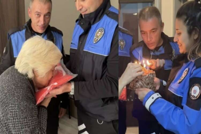 Doğum gününde 112’yi arayıp Türk bayrağı isteyen Nazan teyzeye polisten pastalı sürpriz