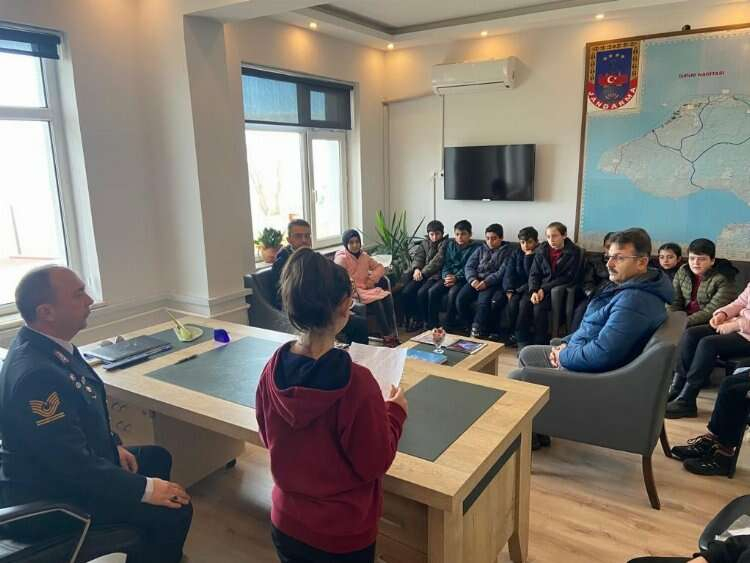 Esenköy Adnan Kaptan Ortaokulu öğrencileri, Pençe-Kilit Harekâtı bölgesinde teröristlerle çıkan çatışmada şehit olan askerler için Esenköy Jandarma Komutanlığı’na taziye ziyareti gerçekleştirdi. Şehitlerimizin anısına Karakol Komutanı Gürkan Demir’e başsağlığı dileklerinde bulunup dualar ve şiirler okuyan öğrencilerin ziyareti duygu dolu anlar yaşattı.,
