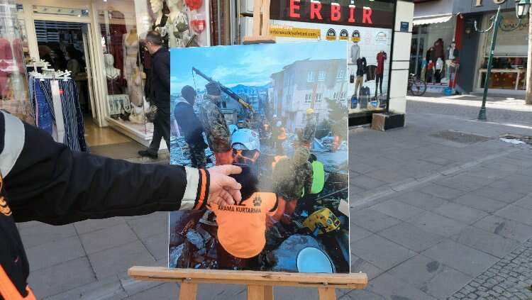 Eskişehir’de İz Derneği tarafından vatandaşlara afet bilincini anlatmak için 6 Şubat 2023 tarihinde yaşanan depremdeki çalışmaları anlatan resim sergisi açıldı.