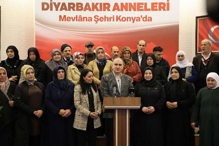 Terör örgütü PKK mensuplarınca kandırılarak dağa kaçırıldığını iddia ettikleri çocuklarına kavuşma ümidiyle 2019 yılının sonbaharından beri HDP'ye karşı oturma eylemi gerçekleştiren Diyarbakır anneleri Konya'ya geldi.