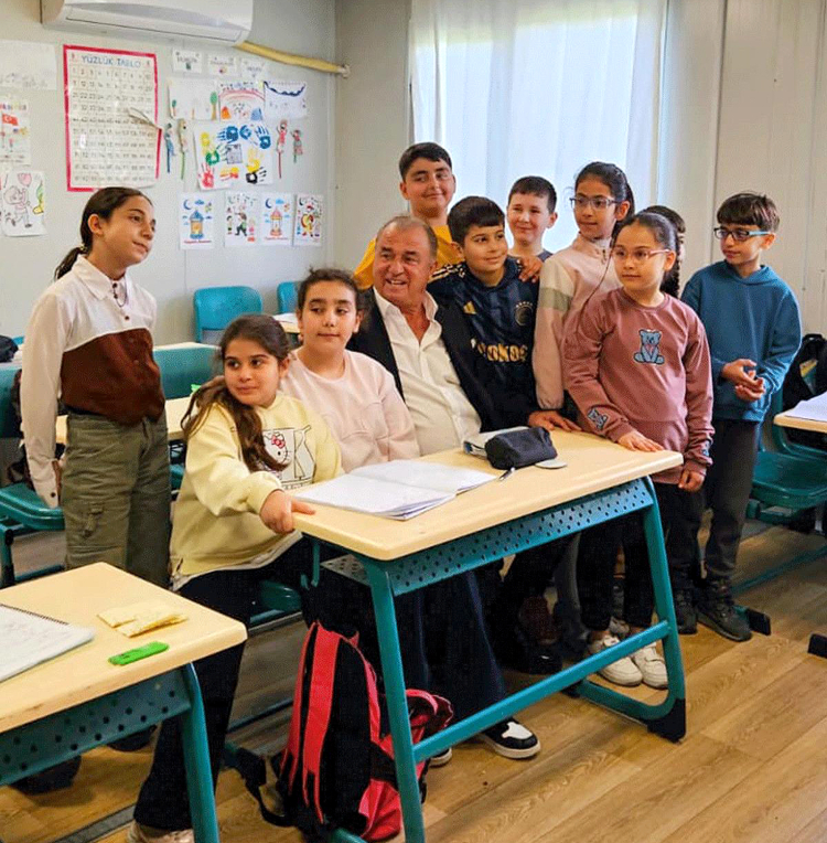 Türk futbolunun efsane isimlerinden Fatih Terim de, program kapsamına Hatay’ın Antakya ilçesinde konteyner kentlerde eğitimlerini sürdüren ilköğretim öğrencileriyle bir araya geldi. Terim, deprem sonrası kurulan geçici yaşam alanlarında öğrenim gören çocuklarla buluşarak hem eğitim süreçlerine hem de günlük yaşamlarına eşlik etti.