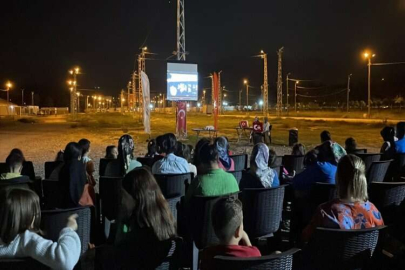 Etkinlik kapsamında çocuklar, kurulan açık hava sinemasında "Dersimiz Atatürk" filmini seyretti.