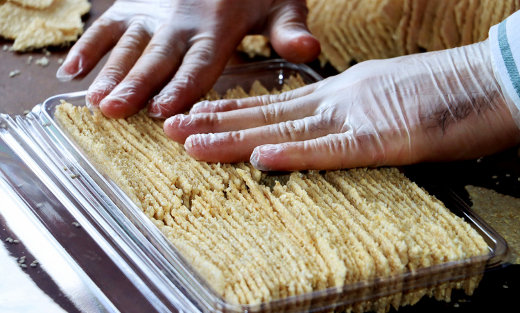 Yaklaşık 65 yıllık özel üretim makinesinde, tamamen geleneksel yöntemlerle hazırlanan küncülü helva; tahin, şeker ve suyun uzun süren emeğiyle yoğruluyor, son aşamada ise üzerine kavrulmuş küncü eklenerek lezzetini buluyor.